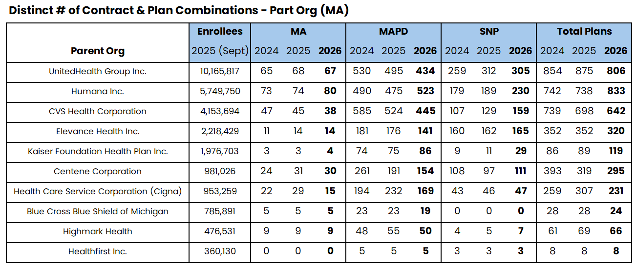 When looking at theΒ TOP 10Β Medicare AdvantageΒ Parent OrganizationsΒ with the most enrollees as of September 2025, we can see that: