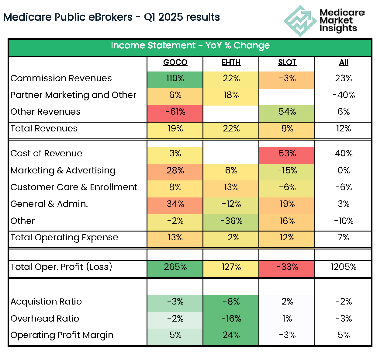 Both GOCO and EHTH moved from operating losses to operating profits.