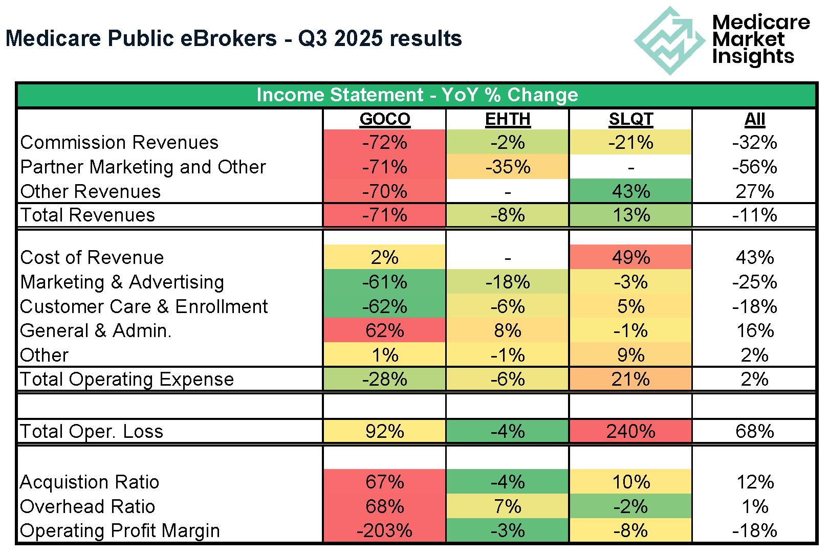Overall sales fell –41% YoY, driven by GOCO’s strategic pull-back, and shift in SEP rules (related to D-SNP policies).
