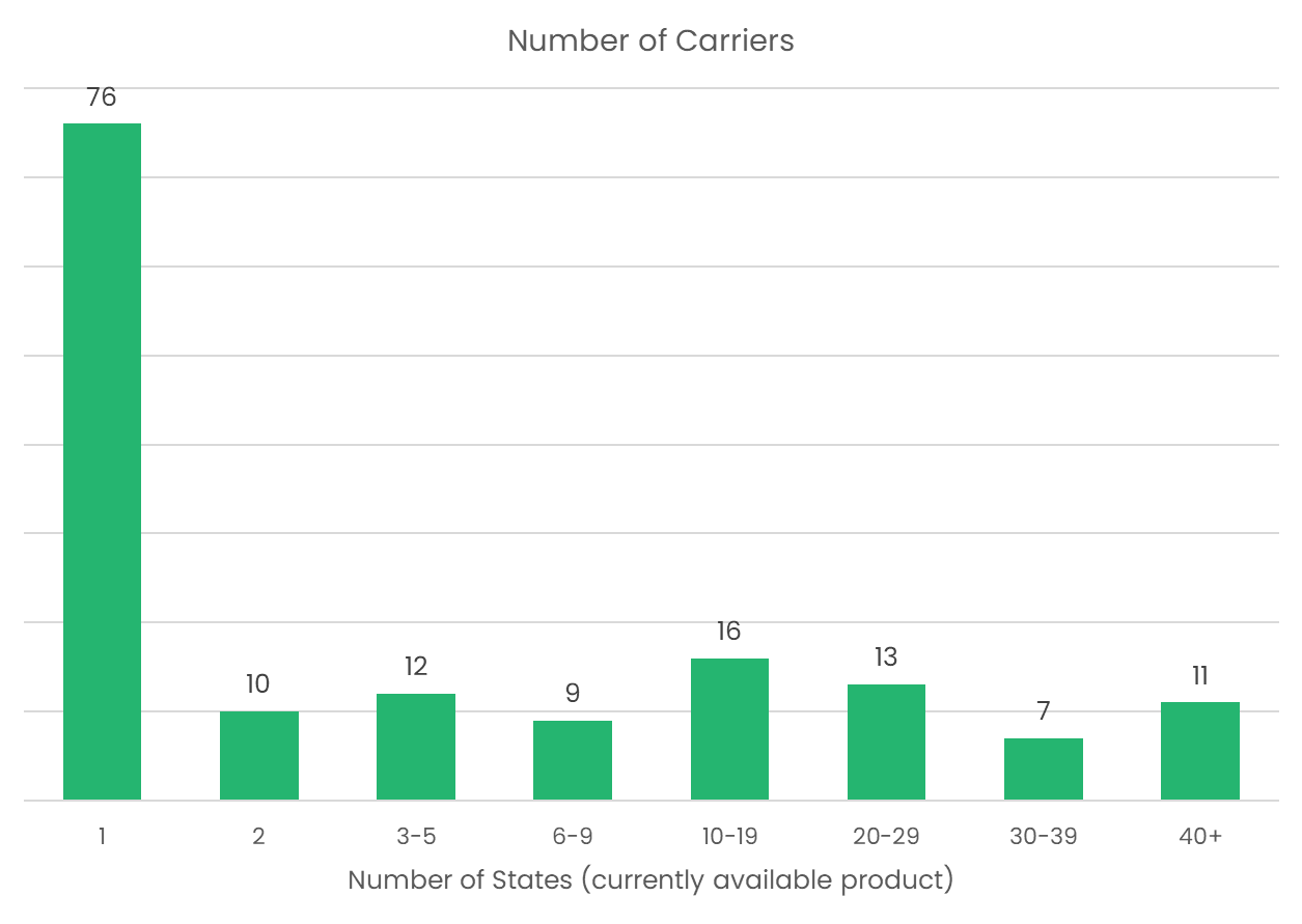 → The following chart shows the breakdown of carriers by number of states where they are offering plans today.
