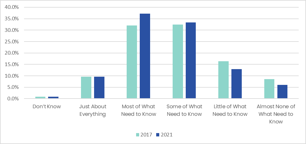 Additionally, in 2021, 19% of beneficiaries indicated that they either knew little or almost none of what they needed to know, which was a decrease of 6% from 2017.