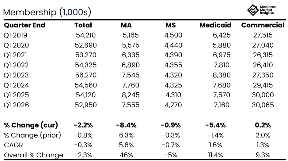 Membership growth has been lead by Medicare Advantage in recent years. But, after 6 straight years of growth, Medicare Advantage membership decreased 8.4%.