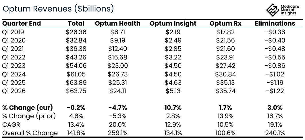 Total Q1 Revenues for Optum decreased for the first time in the past 7 years.