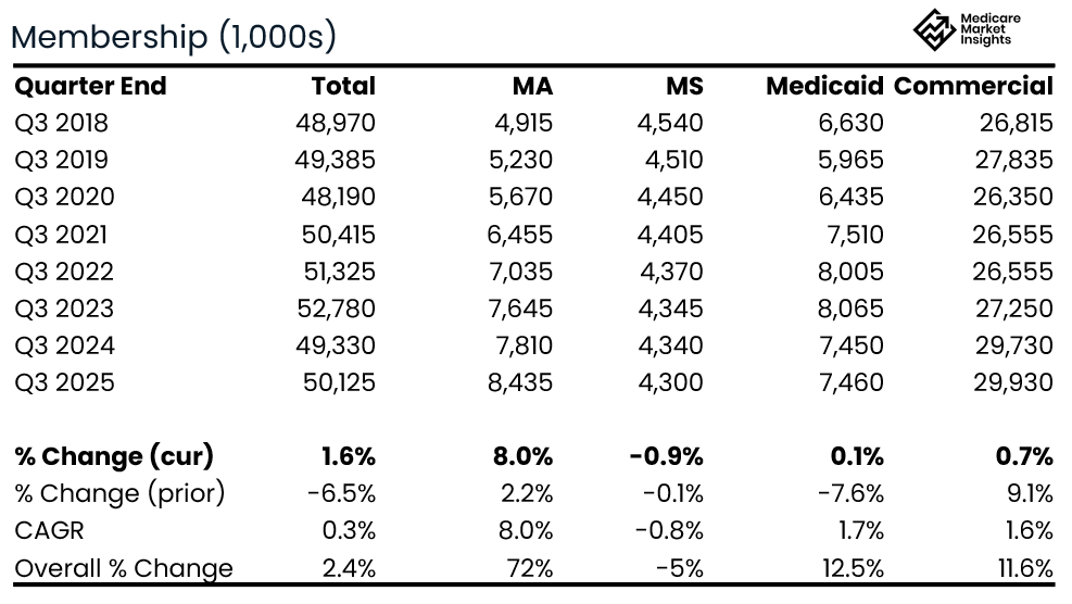 Membership growth has been lead by Medicare Advantage enrollment growth.