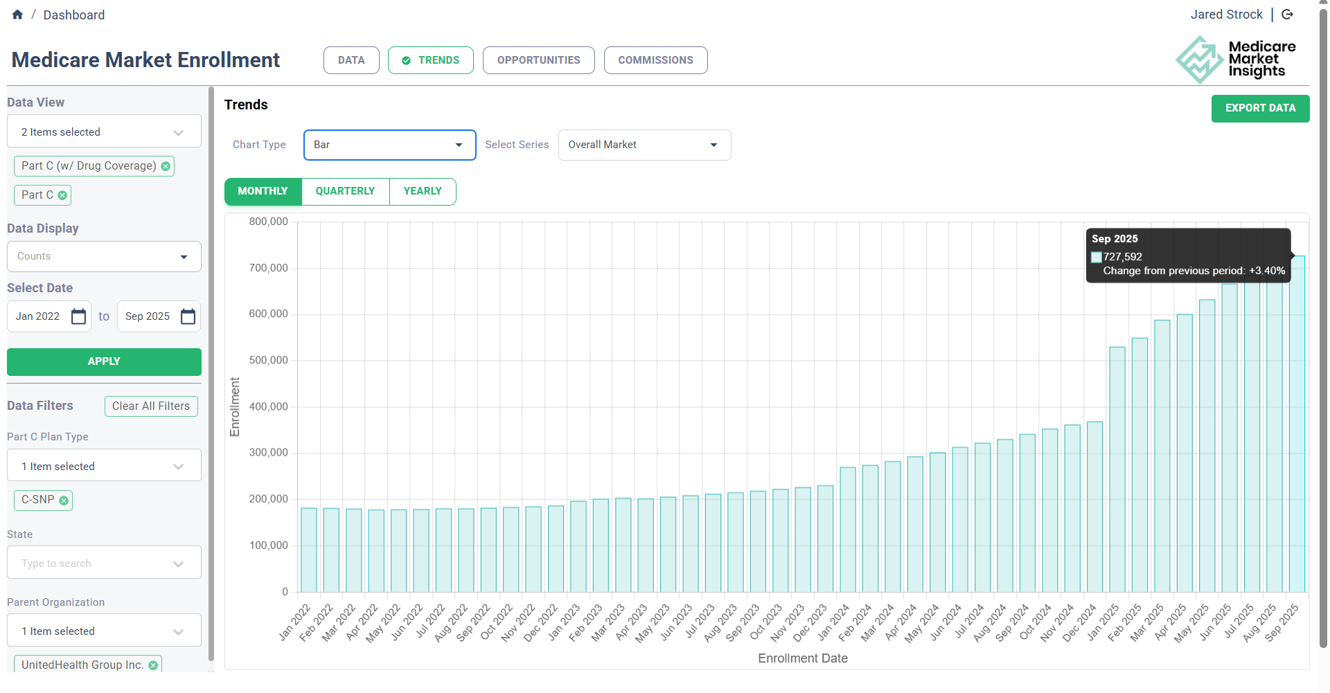 After a slowdown last year, MA enrollment surged, driven primarily by C-SNP growth (see below), which began during AEP and has continued throughout 2025.
