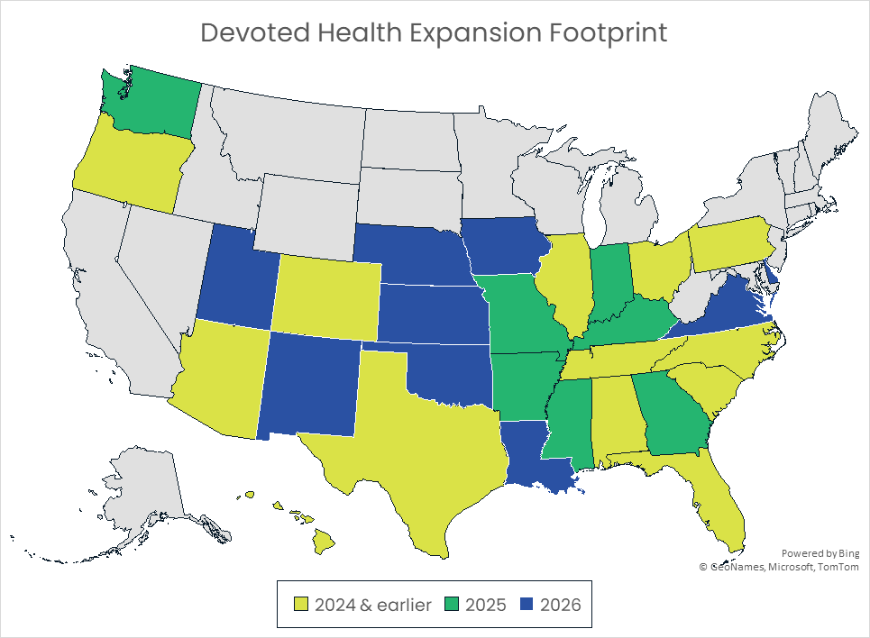 Despite the lower enrollment numbers to date in 2025, Devoted looks ready to continue expansion heading into 2026 – adding plans in 9 new states! This will bring their total footprint to 999 counties across 29 states.